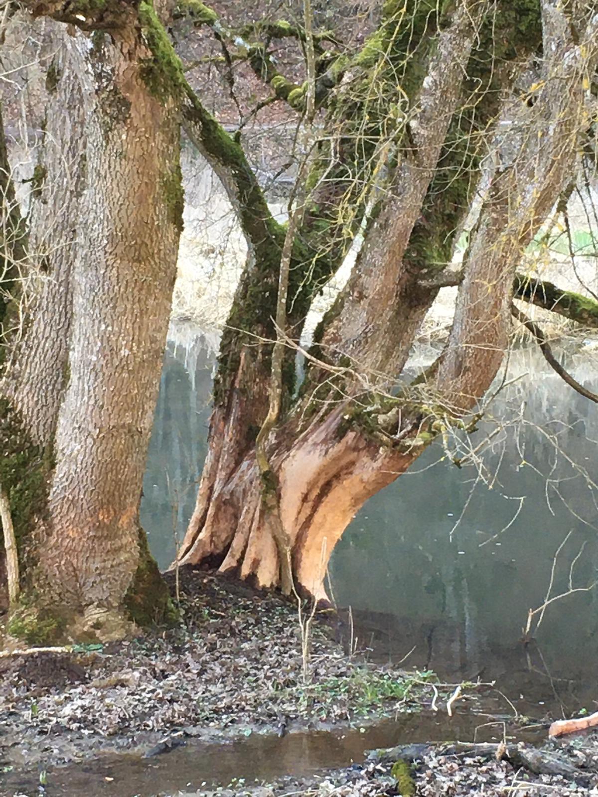Wir kommen vorbei an mehreren Burgruinen, haben herrliche Aussicht auf die Lauter, wandern teilweise auf Pfaden mit alpinem Charakter, vorbei an bizarren Felsentürmen und sehen Biberspuren an der Lauter. Und natürlich dürfen die Märzenbecher bei dieser Wanderung nicht fehlen.