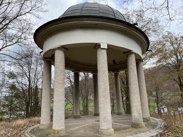 Gemeinsam mit unseren Wanderfreunden vom Albverein Suppingen und weiteren Gästen wandern wir durch Bad Überkingen hinaus in Richtung Geislingen. Überall sprießt das frische Grün und blühen Blumen. Bei unserer Rundwanderung kommen wir auch zum Schillertempel, ein interessantes Bauwerk mit schönem Blick auf Bad Überkingen.