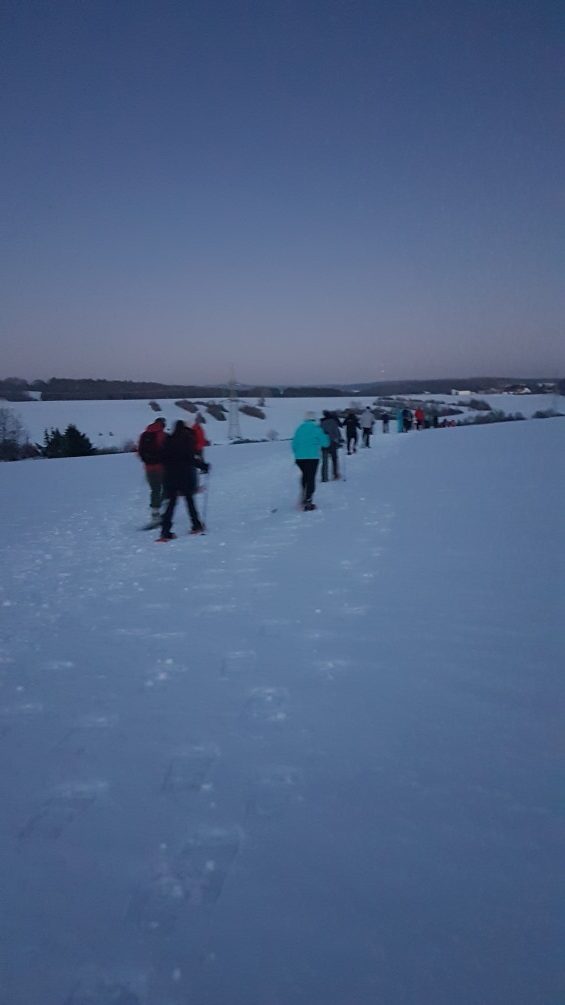 Der Mond begleitete die Wanderer von Anfang an. Sternenklar und luftstill war die Nacht. Eine ganz besondere Stimmung. Im großem Bogen gings um die Windräder herum. Bei einer Pause gabs noch Glühwein und Punsch, selbstgebackene Speck- und Laugenweckle sowie Schneckennudeln. Ein Erlebnis, an das sich viele noch lange erinnern werden. Bericht: U. Rehm Fotos: S. Ascher