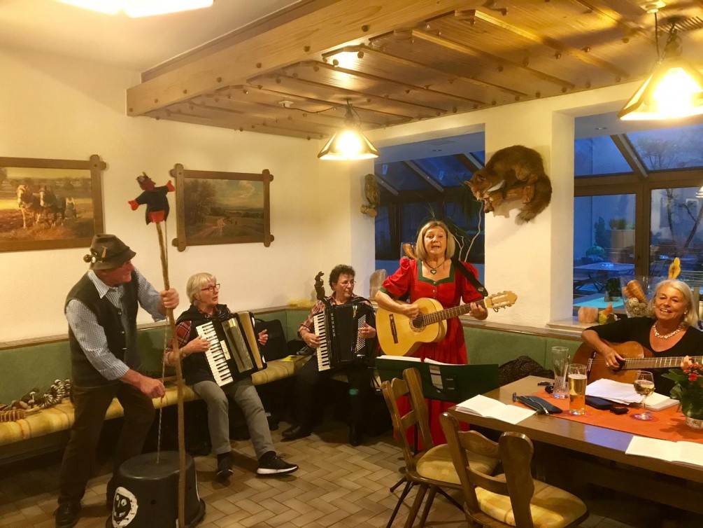 Es wurde viel und lange gesungen beim „Lieder singen“ vom Albverein Westerheim im Gasthaus Rössle. Die eingeladenen Musikanten spielten flott zu Wander- und Fahrtenliedern auf. Mit Akkordeon, Gitarre und Teufelsgeige war die Stimmung der Besucher von Anfang an ganz toll. Von den ausgeteilten Textheften konnte man sich die Wunschlieder aussuchen. Auch die Trinksprüche und Witze von „Bubi“ an der Teufelsgeige brachte Stimmung und viele Lacher. Den Musikanten gefiel es so gut, dass sie bis Mitternacht spielten und versprachen zum nächsten Fahrtenliedersingen im Oktober wieder zu kommen. Bericht und Foto: Manfred Rehm