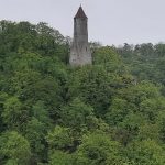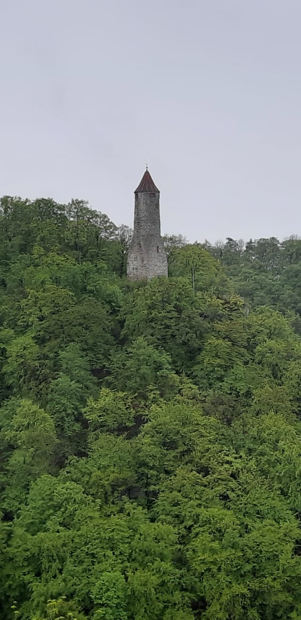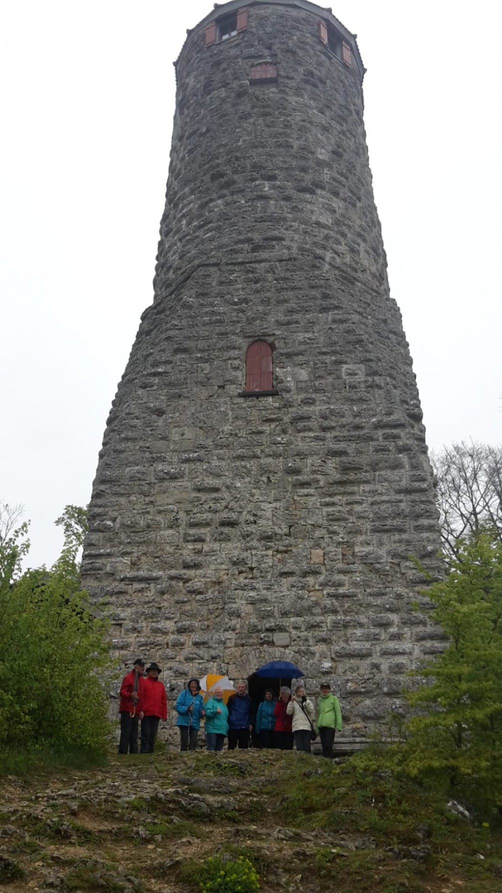 Trotz Regen haben es sich 10 Wanderer nicht nehmen lassen, nach Geislingen/Steige zu fahren und zum Ödenturm in Weiler zu laufen. Marlene Banzhaf erzählte uns etwas zur Geschichte des Turmes und danach gings weiter zur Ruine Helfenstein mit herrlichem Blick auf Geislingen .