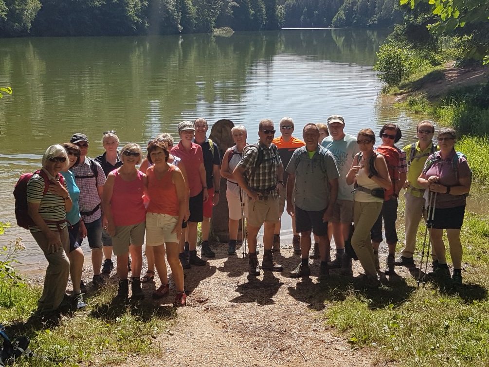 Am Sonntag den 11.8.2019 luden Andrea und Martin zu einer gemütlichen Sonntagswanderung am Herrenbachstausee in Adelberg ein. 20 gutgelaunte Wanderer folgten gerne der Einladung. Bei schönem Wetter starteten wir am Kloster in Adelberg. Es ging durch den Klosterhof durch den Wald hinab zum Stausee. Die entschleunigte Wanderung am Ufer entang des Sees war für uns alle sehr schön. Erster Halt war die Zachersmühle wo wir im Biergarten oder auf der wunderschönen Terasse einen Kaffee oder auch ein Stück Kuchen oder Eis genossen. Nach der Pause gings dann über Wald und Forstweg zurück durch das Dorf Adelberg zum Kloster. Dort ließen wir den Tag bei einer Einkehr ausklingen.