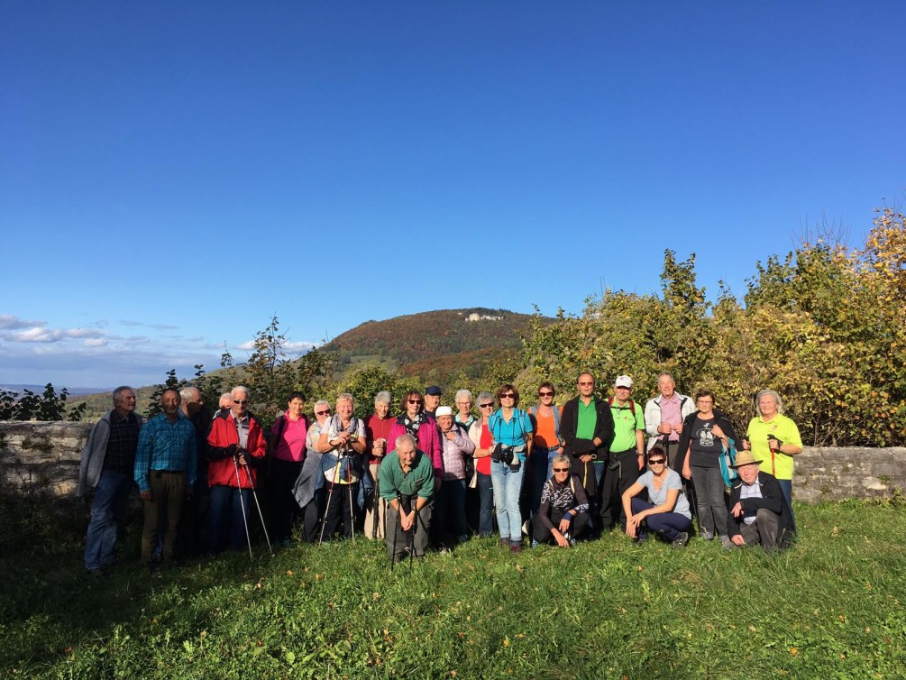 Bei perfektem Herbstwetter machten sich 27 Wanderfreunde aus Westerheim, Laichingen, Suppingen und Asch auf den Weg zur Sulzburg. Gleich zu Beginn führte der Weg ständig bergauf ehe der Waldrand erreicht war. Auf schönem Waldweg gings weiter und immer wieder boten sich wunderschöne Ausblicke auf die herbstgolden leuchtenden Schluchtwälder, den Teckberg mit Sattelbogen und den Hohenbol. Ein Serpentinenpfad führte rauf zur Ruine Sulzburg die eine schöne Kulisse fürs Gruppenfoto bot. Die Abschlusseinkehr konnte im nahegelegenen Sulzburghof bei Kaffee, Kuchen oder Vesper genossen werden. Wanderführer: Ute Rehm, Simone Ascher