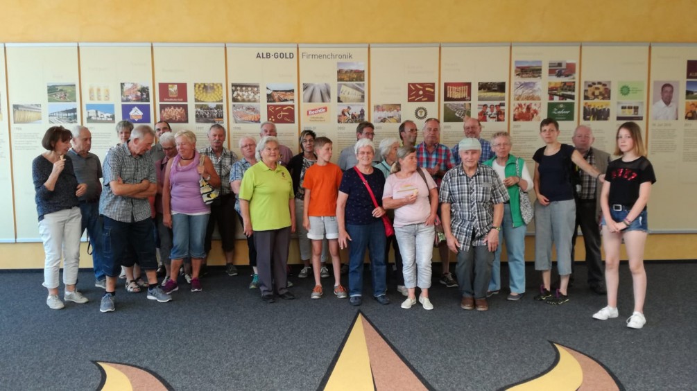14 interessierte Westerheimer und 14 Wanderfreunde aus Suppingen machten sich schon um 13.00 Uhr auf den Weg nach Trochtelfingen. Wir bekamen einen Einführungsfilm über die Nudelherstellung und konnten dann in Hygieneschutzkleidung mit einer fachkundigen Führung das Nudelwerk besichtigen. Anschließend ging es dann zur gemütlichen Einkehr, einkaufen oder zu einer Besichtigung im Kräutergarten