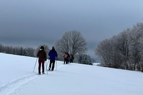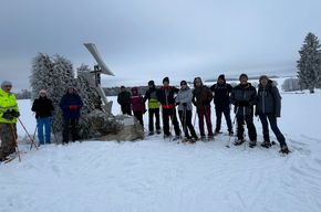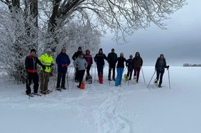 Wir luden ganz spontan zu einer Tour mit Schneeschuhen durch den Neuschnee ein. Immer der Nase nach stapften 13 Schneeschuhwanderer Richtung Westen.