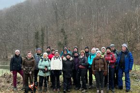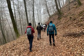 Bei trüber Sicht wanderten wir am Heidengraben los. Es ging ins Kaltental zu den Kaltentalweihern und von dort über den Sauweg hinauf auf den Lauereckfels. Bei leichtem Schneefall wanderten wir auf dem Heidengraben zurück zum Parkplatz.